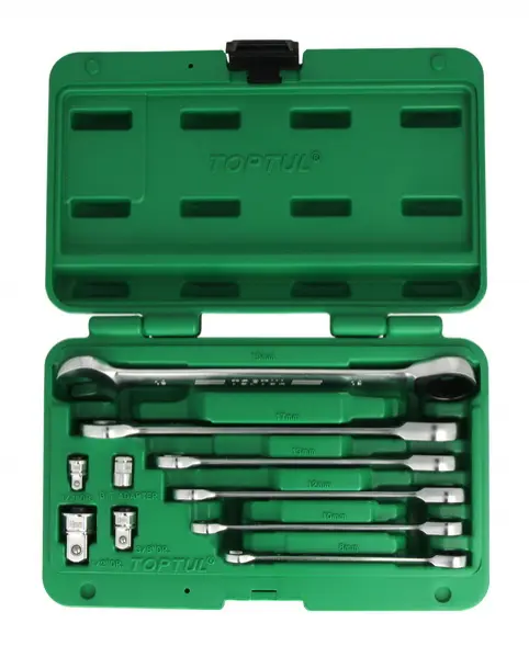 Набор ключей комбинированных с трещоткой 8-19 и с переходниками GAAI1002 GAAI1004 Toptul