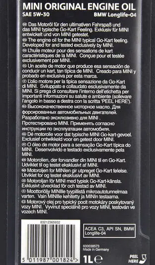 Масло моторное / MINI Original Engine Oil 5W-30 (1 л) 83212365932 BMW