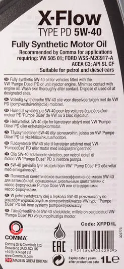 Масло моторное X-Flow Type PD 5W-40 (1 л) XFPD1L COMMA