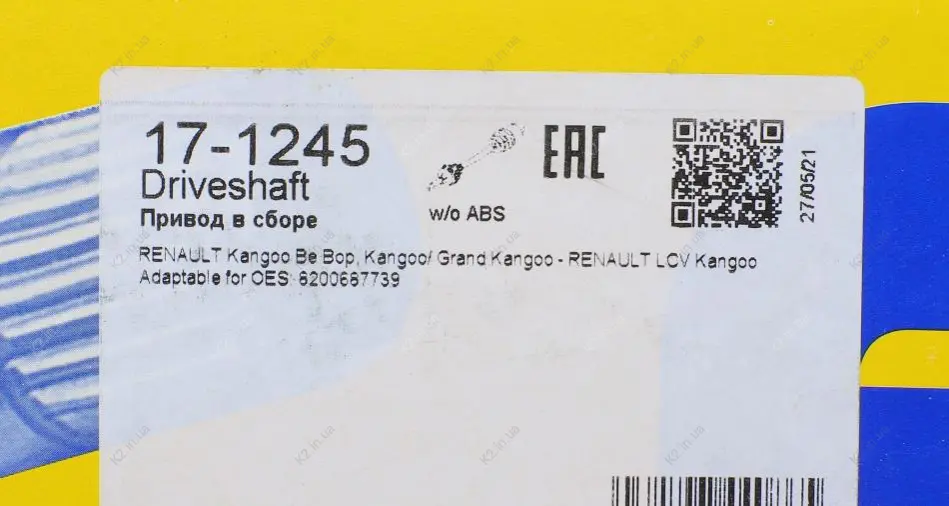 Полуось Renault 17-1245 Metelli