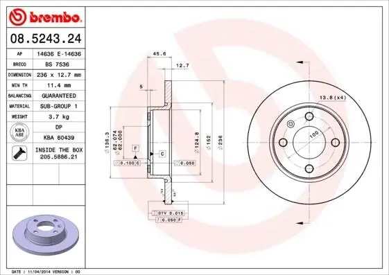 Тормозной диск 08.5243.24 BREMBO