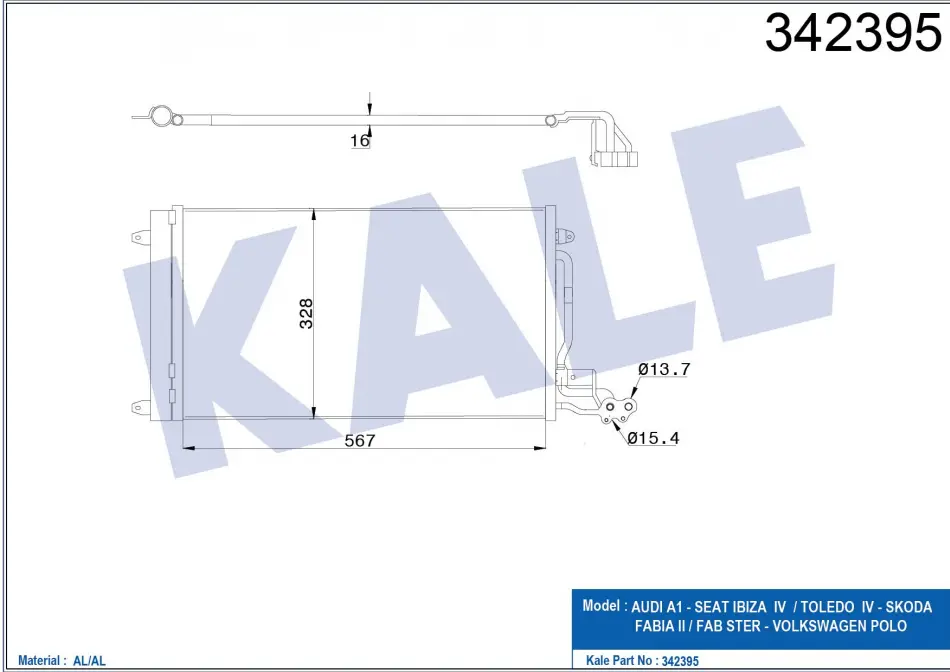 Радиатор кондиционера Audi A1, Seat Ibiza IV / Toledo IV, Skoda Fabia II 342395 KALE OTO RADYATOR