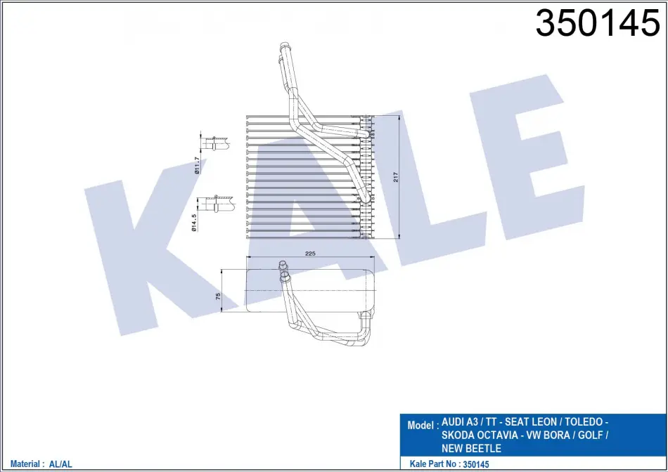 KALE VW Испаритель Audi A3,Bora,Golf IV,Skoda Octavia II 350145 KALE OTO RADYATOR