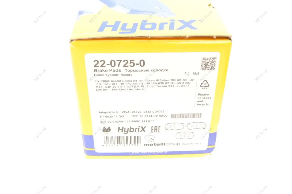 Аналоги "22-0725-0 Metelli":
