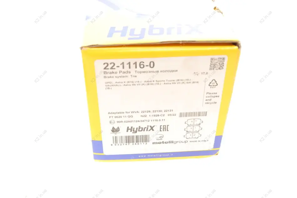 Аналоги "22-1116-0 Metelli":
