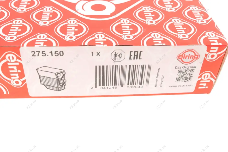 Компания ELRING - немецкий производитель запчастей для вторичного рынка и конвейерного производства. Компания основана в 1879 году в качестве торгового предприятия по технической продукции. В 1885 году основан первый производственный цех в г. Вена. Основные направления деятельности компании - производство прокладок, сальников, уплотнительных колец, части термоизоляции. Запчасти изготавливаются из материалов высокого качества, а качество производства контролируется на всех его этапах. Продукция компании отличается высоким качеством, надежностью и длительным сроком эксплуатации. Запчасти могут свободно использовать при ремонте любой степени сложности.