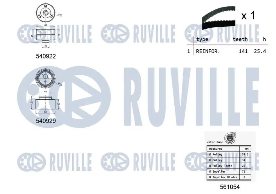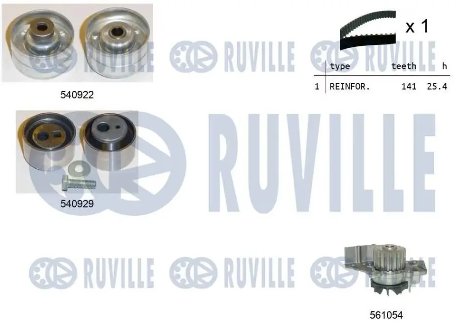 Р-кт ГРМ Ремень+2 ролика с водяным насосом Citroen,Peugeot 2.0HDI 5501341 RUVILLE