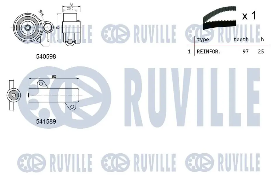 TOYOTA К-кт ремня ГРМ(2 ролика+ремень) Land Cruiser 02- 550271 RUVILLE