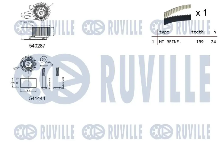 К-кт. ГРМ (рем.+2шт. ролик) Opel Vectra c 1.9 CDTI 550260 RUVILLE