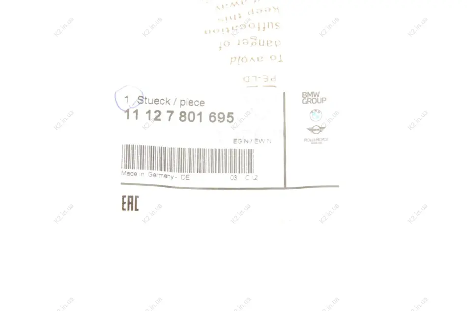 Прокладка 11127801695 BMW