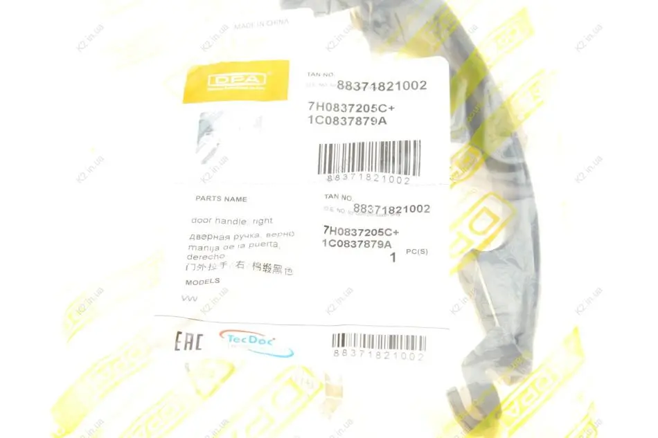 Ручка дверей (передніх/ззовні) (R) VW Touran/T5 03-15 88371821002 DPA