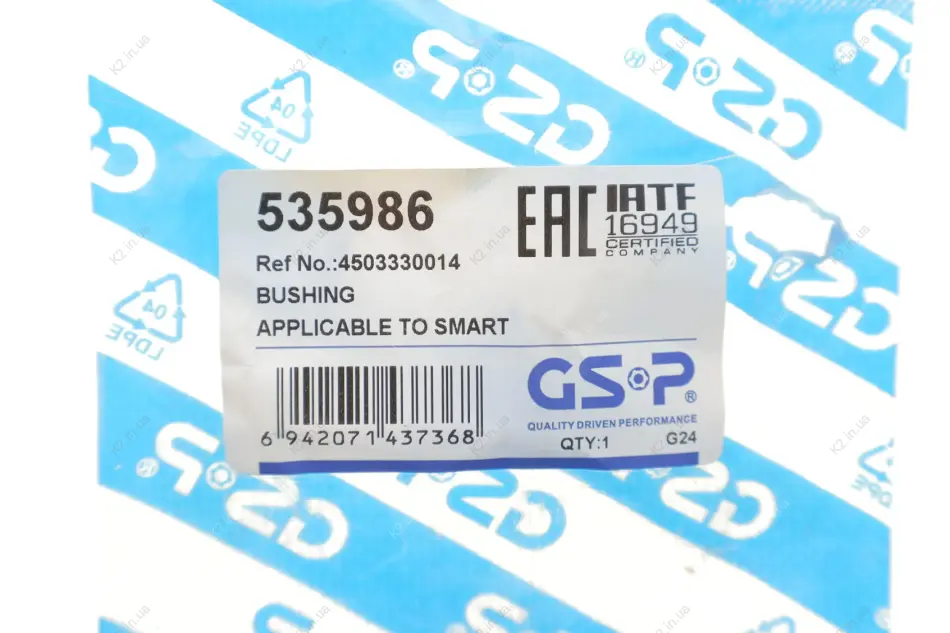 Сайлентблок важеля (переднього) Smart Cabrio (450)/Fortwo Cabrio (450) 00- 535986 GSP