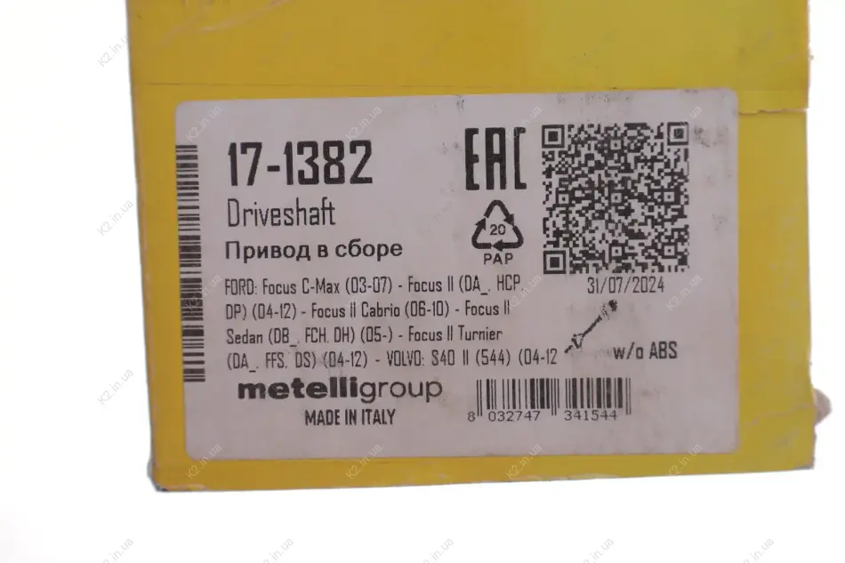Піввісь (передня) Ford Focus/Volvo S40/V50 04-12 (R) (36x26x919) 17-1382 Metelli