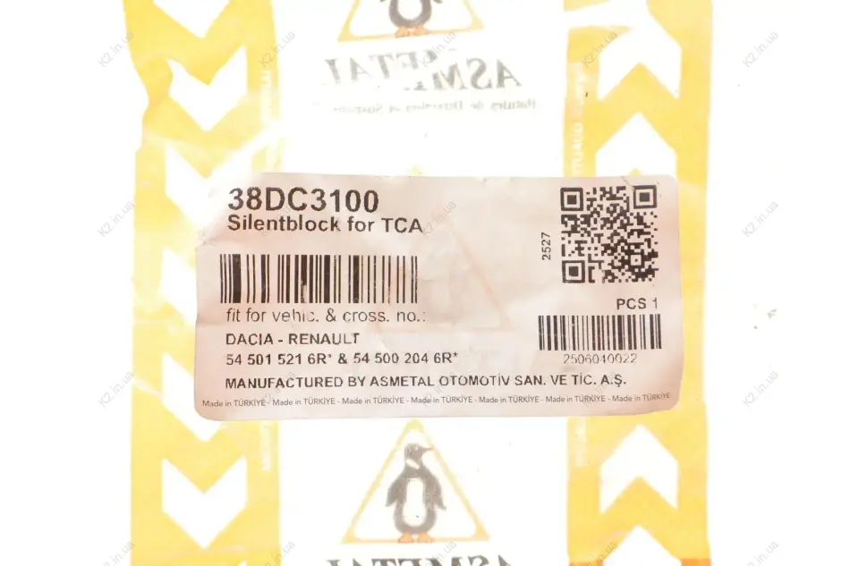 Сайлентблок важеля (переднього) Dacia Duster 17- 38DC3100 ASMETAL
