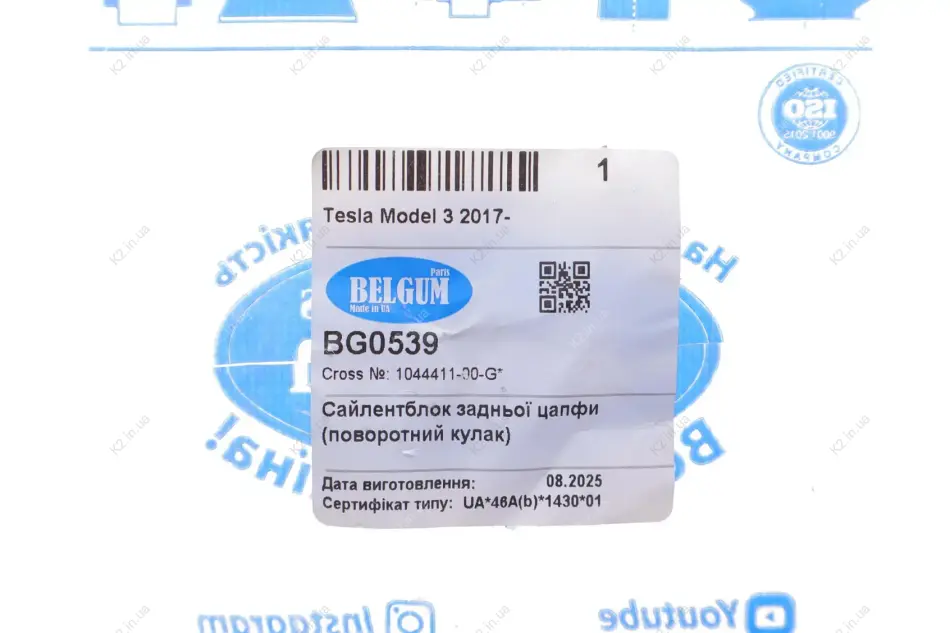 Сайлентблок цапфи (задньої/зверху/спереду) Tesla Model 3 17- BG0539 BELGUM PARTS