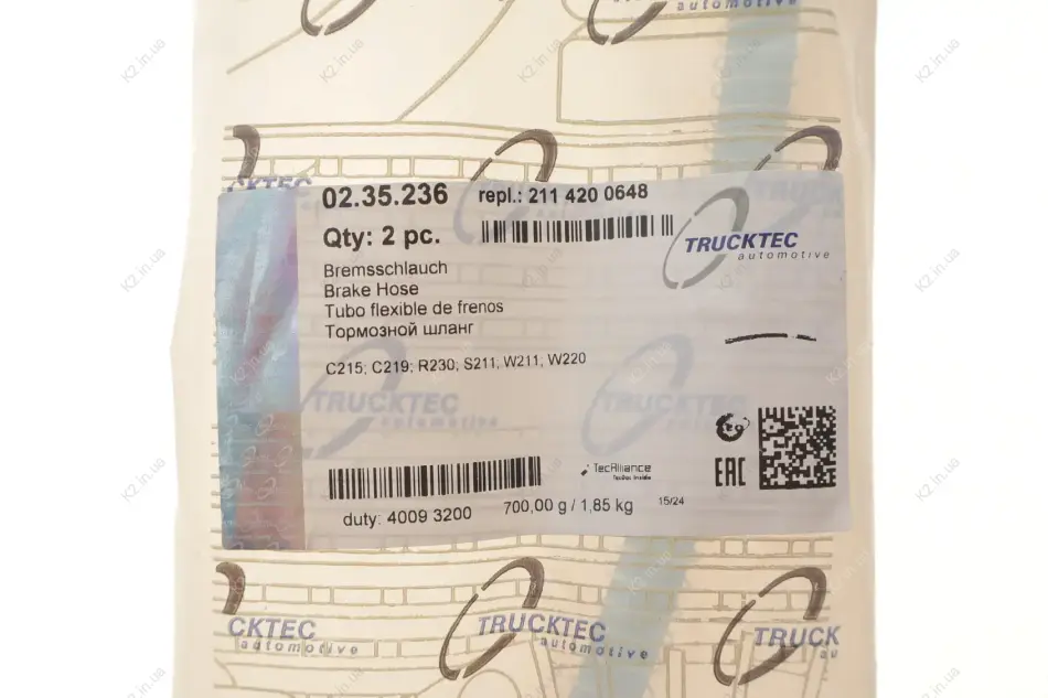 Шланг гальмівний (задній) MB E- class (W211) 02-09 02.35.236 Trucktec automotive