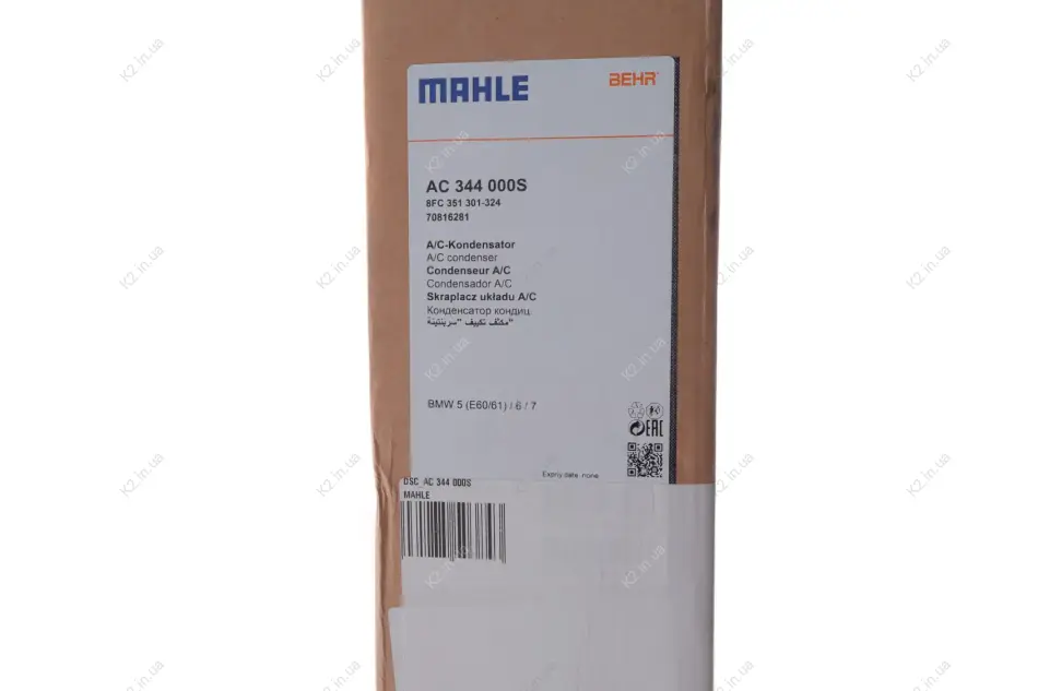 Радіатор кондиціонера BMW 5 (E60/E61)/6 (E63)/7 (E65/E66//E67) 2.0-6.0 01-10(незначне пошкодження) DSC_AC 344 000S MAHLE KNECHT