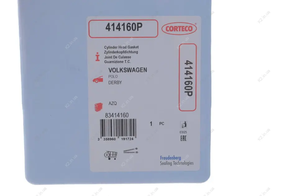 Прокладка ГБЦ Skoda Fabia/Rapid/VW Polo 1.2 12V 01- (0.90mm) 414160P CORTECO