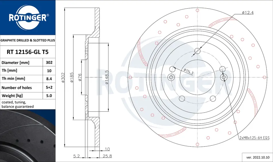 Диск тормозной с перфорацией и слотированием с графитовым покрытием RT12156-GLT5 ROTINGER