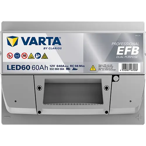 Акумулятор 12В 60Агод. PROFESSIONAL DUAL PURPOSE EFB R+ 242x175x190мм, B13 - монтажний фланець 10.5мм подвійного призначення/efb 932060064K312 VARTA