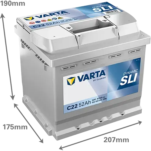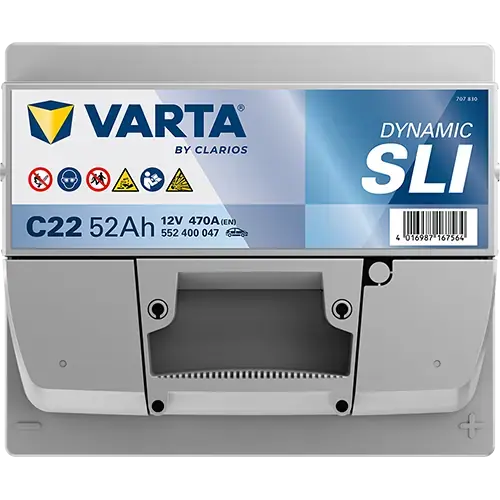Акумулятор 12В 52Агод./470А (EN) Dynamic SLI (R+ стандартні клеми) 207x175x190 B13 - монтажний фланець 10.5мм (пусковий) 552400047K262 VARTA