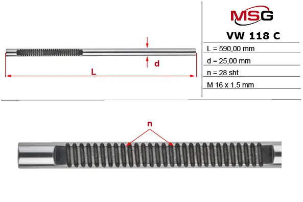Шток рулевой рейки без ГУР VW POLO (6R_) 2011- VW118C MSG