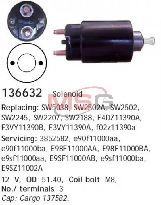 Реле втягивающее стартера 136632 CARGO