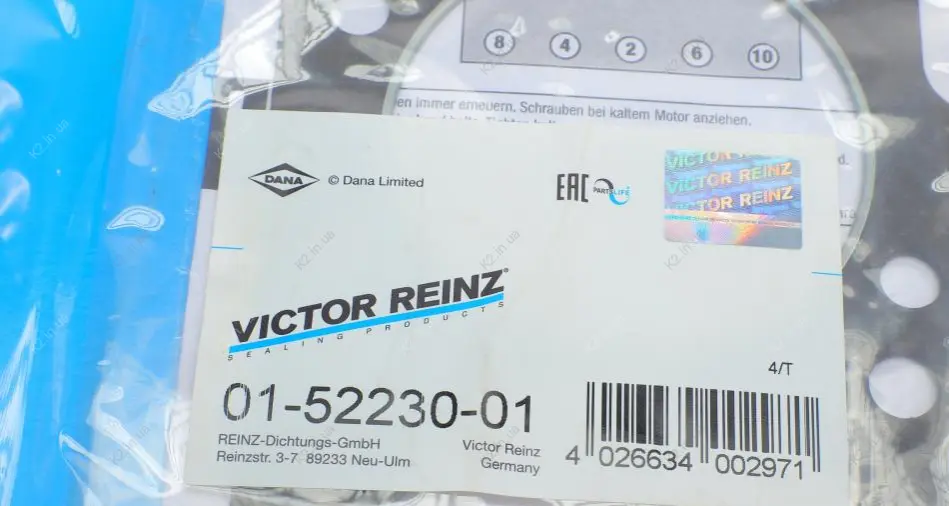 Под брендом VICTOR REINZ представлена продукция 23 промышленных предприятий в Германии и других странах. Качество товаров под маркой victor reinz подтверждено сертификатами международных организаций ISO 9001, ISO 14001, ISO/TS 16949, DQLA 2000, OHSAS 18001.