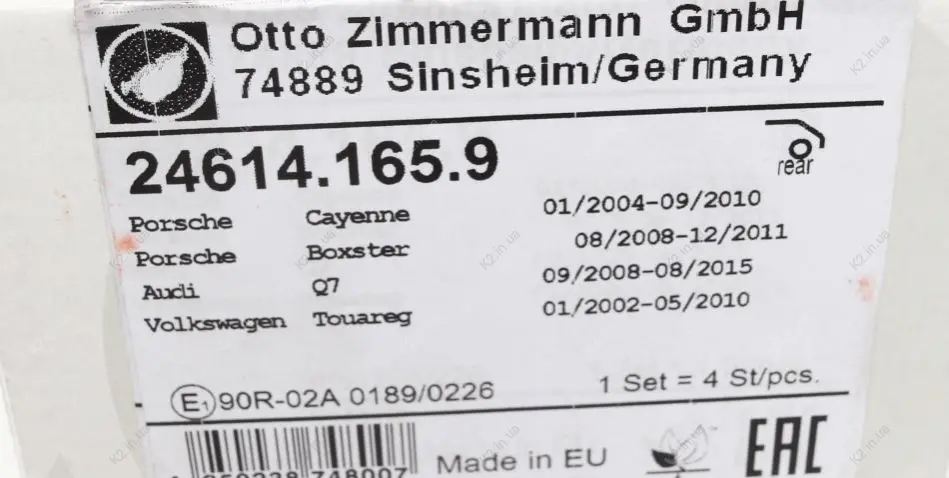 Колодки тормозные дисковые 24614.165.9 ZIMMERMANN