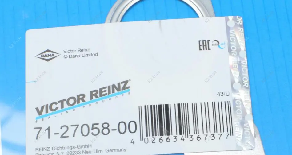 Немецкая компания VICTOR REINZ основана в 1920 году. Компания занимается производством и поставкой комплектующих и запчастей для двигателя, выхлопной системы, деталей кузова и салона.Продукция поступает в качестве оригинальных деталей на сборочные конвейеры ведущих автопроизводителей: Mercedes AG, BMW, Ferrari, Fiat, Audi, Ford, VW, Renault, Volvo.