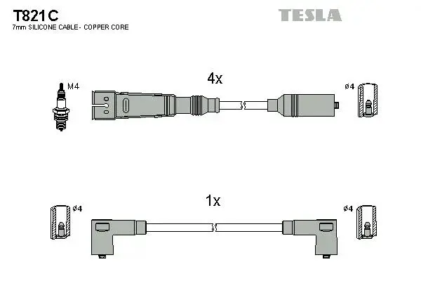 Кабель зажигания, к-кт Seat, VW 88-02 1,4; 1,7 T821C TESLA