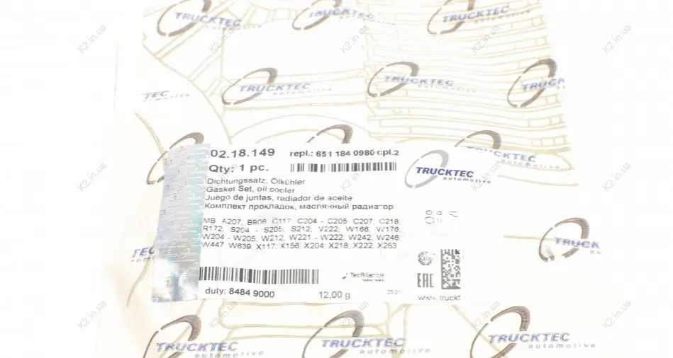 Прокладка масляного радіатора 02.18.149 Trucktec automotive