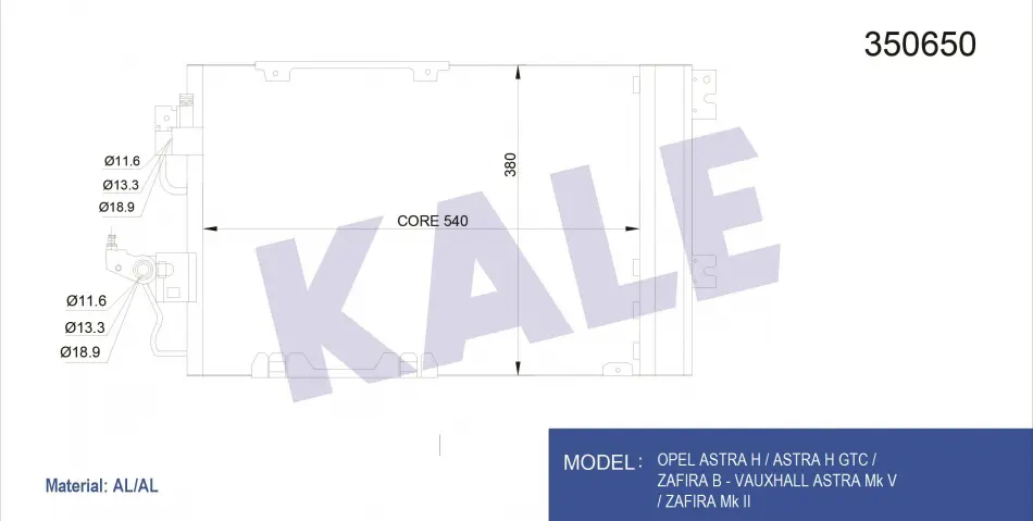 Радіатор кондиціонера Opel Astra H, Astra H Gtc, Zafira B 350650 KALE OTO RADYATOR