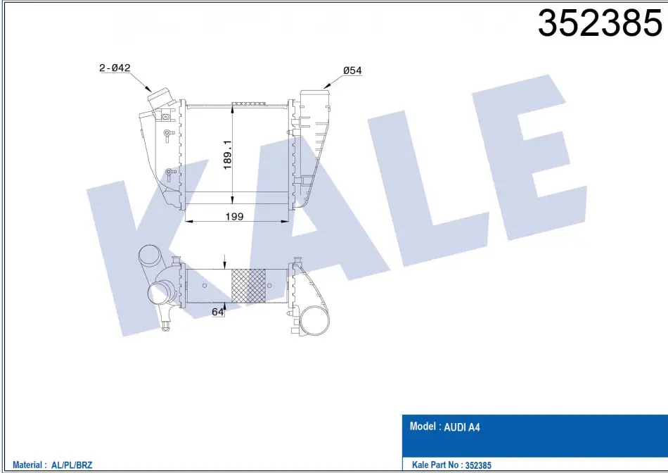 KALE VW Интеркулер Audi A4 2.5TDI 00- 352385 KALE OTO RADYATOR