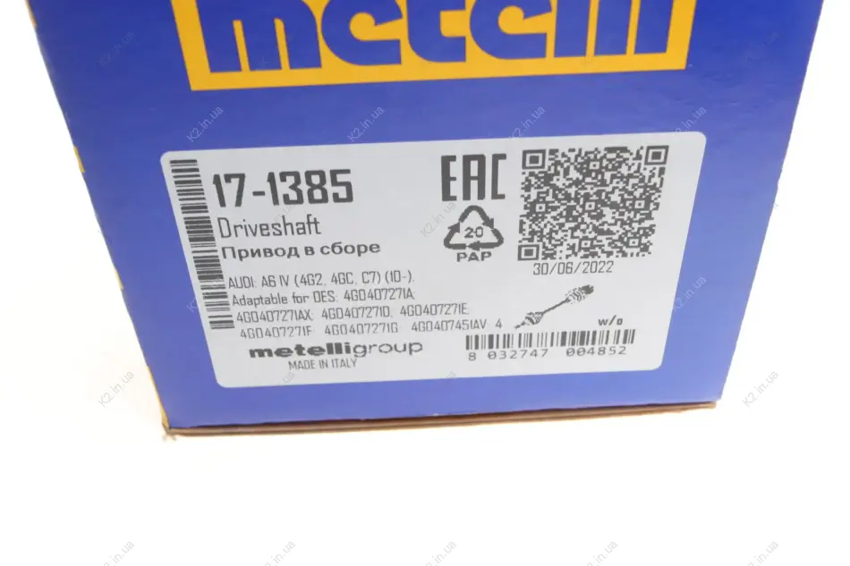 Привідний вал 17-1385 Metelli