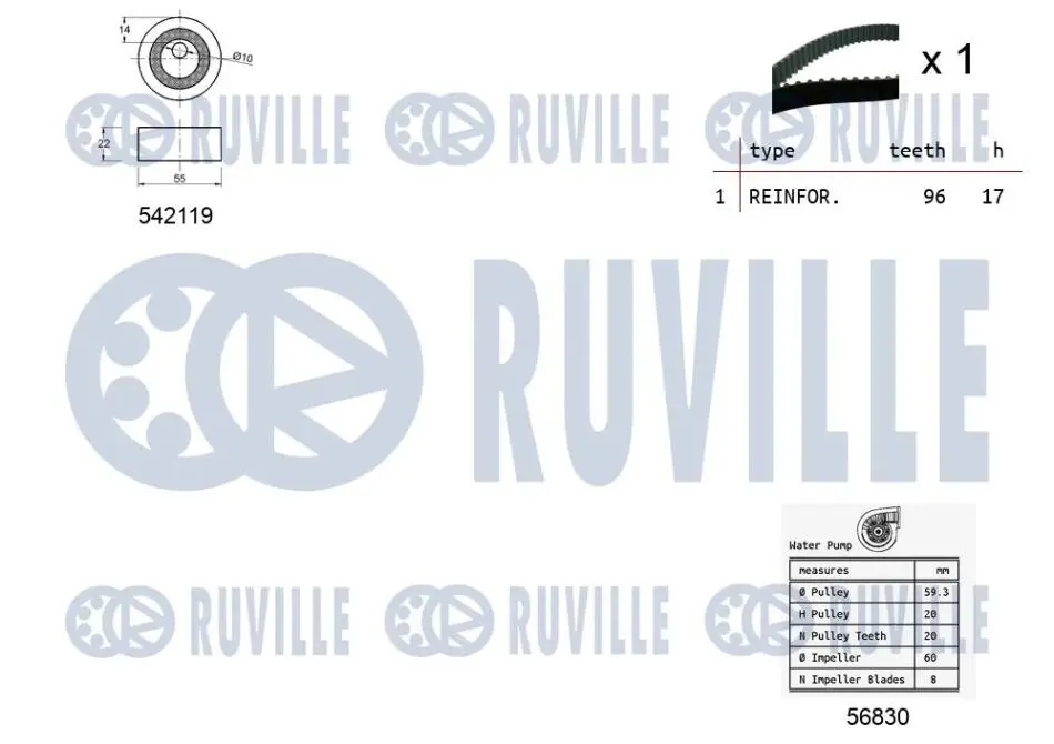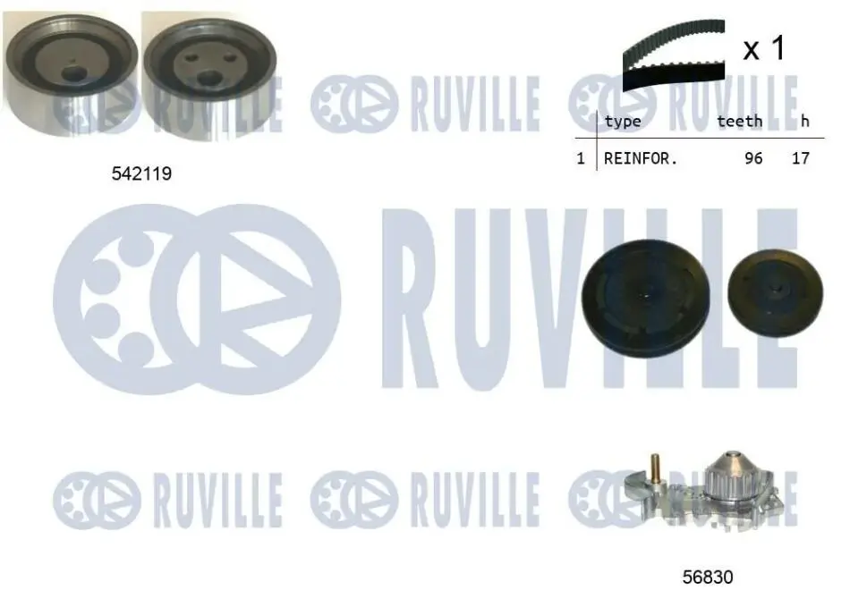 DACIA К-т ГРМ (ремень+ ролик+помпа) Logan 1.4/1.6, Sandero Renaulr Kangoo 5503251 RUVILLE