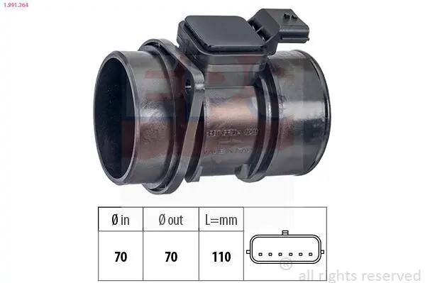 RENAULT Расходомер воздуха Kangoo,Master II,Megane II,Trafic II,Nissan Qashqai,Opel Movano,Vivaro 1.5/2.5dCi 01- 1.991.364 Eps