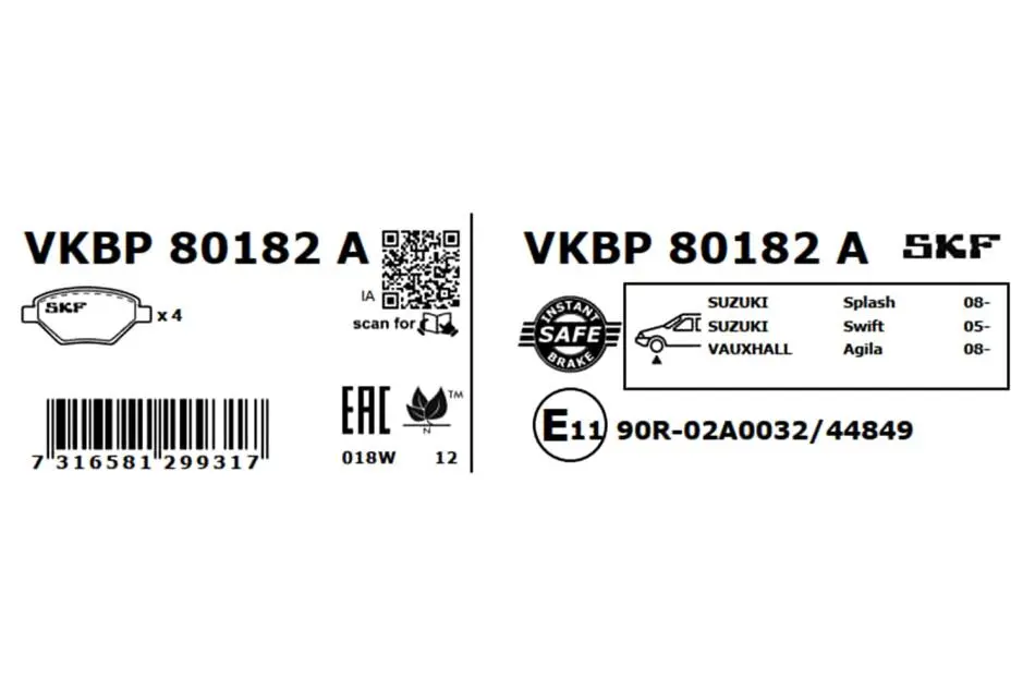 Колодки гальмівні дискові (комплект 4 шт) VKBP 80182 A SKF