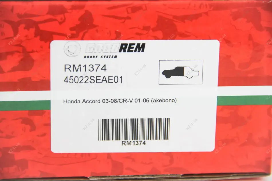 Гальмівні колодки пер. Honda Accord 03-08/CR-V 01-06 (akebono) RM1374 GOODREM