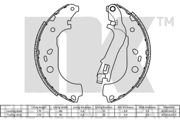 Колодки гальмівні барабанні, комплект 2723725 NK