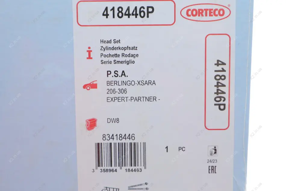 Комплект прокладок, головка циліндра PSA 1,9D DW8 418446P CORTECO
