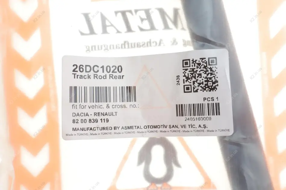 Важіль задн. (позаду) Renault Duster 4x4 1.5 dCi 10- 26DC1020 ASMETAL