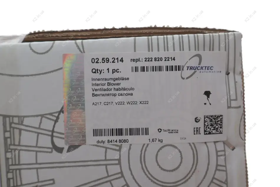 Моторчик пічки MB S-class (W222/V222/X222) 13- 02.59.214 Trucktec automotive