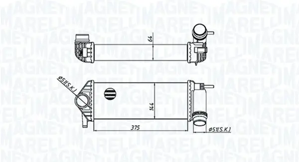 Інтеркулер MERCEDES CITAN MIXTO (DOUBLE CABIN), CITAN (MPV), CITAN/MINIVAN (W415) RENAULT KANGOO EXPRESS, KANGOO II 1.2/1.5D 06.08- 351319205510 MAGNETI MARELLI