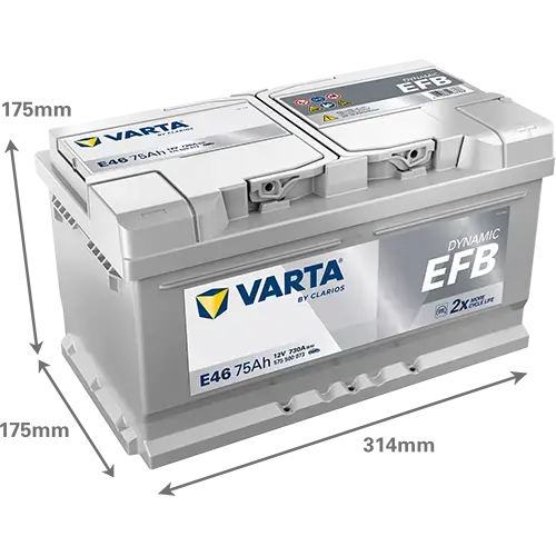 Акумулятор 12В 75Агод./730А (EN) Dynamic EFB START&STOP EFB (R+ стандартні клеми) 315x175x175 B13 - монтажний фланець 10.5мм (пусковий/efb) 575500073K262 VARTA