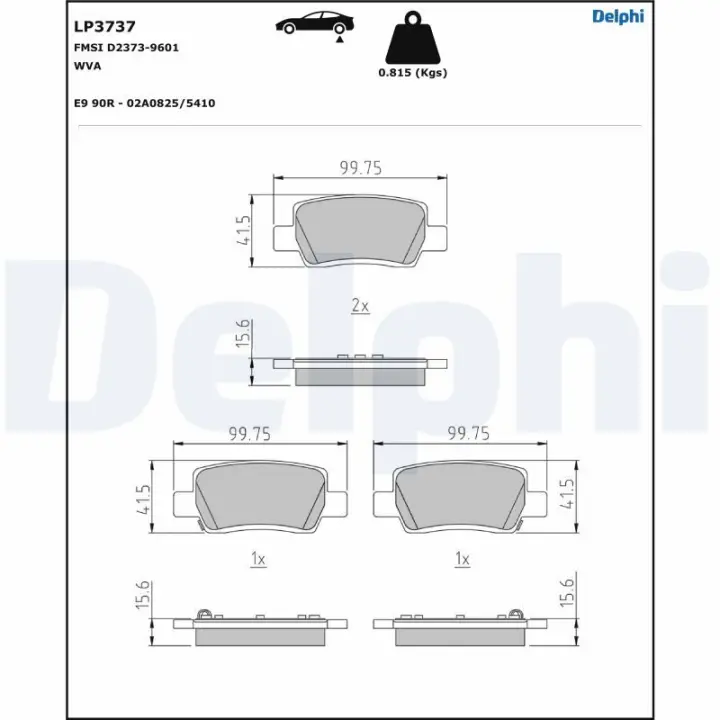 Комплект гальмівних колодок задн (з шумопоглинаючою пластиною), HYUNDAI ELANTRA VII, KONA KIA EV3, SELTOS 1.0-Electric 08.19- LP3737 Delphi