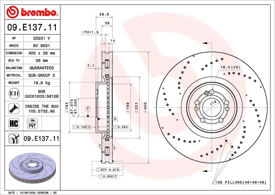 Диск гальмівний 09.E137.11 BREMBO