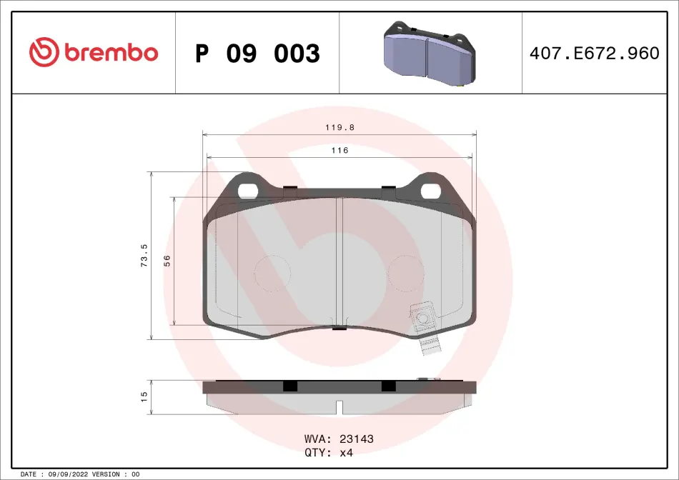 Гальмівні колодки дискові P09003 BREMBO