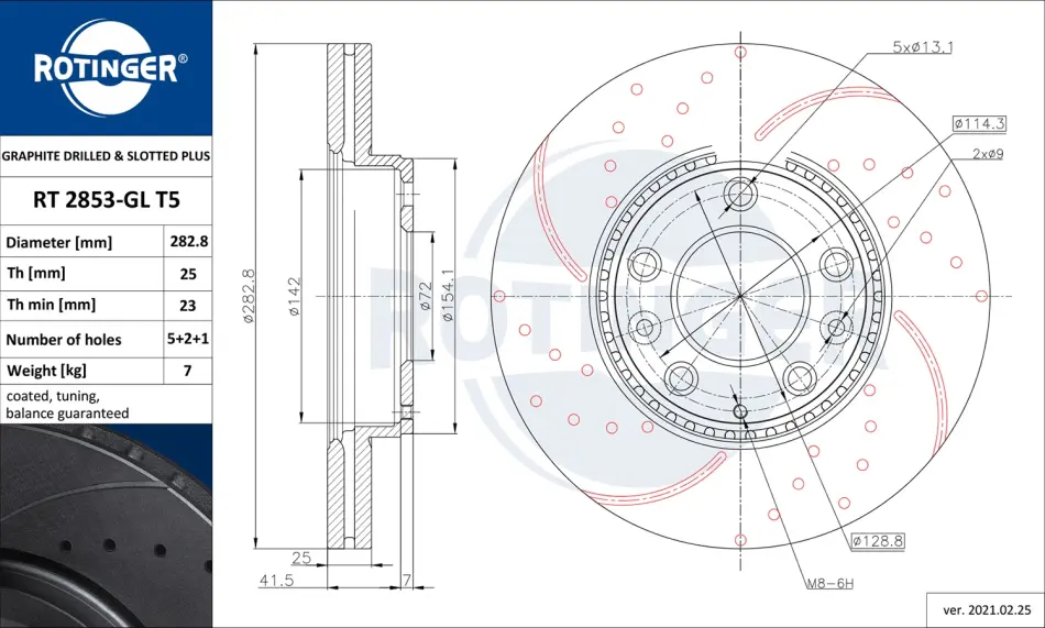 Диск тормозной передний (кратно 2) MAZDA 6 (02-07) [283X49 перфорир.] (RT2853GLT RT2853GLT5 ROTINGER