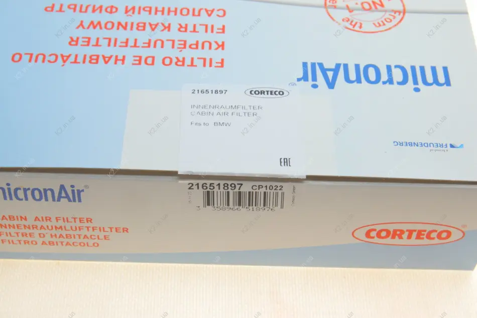 Повітряний фільтр салону 2165 1897 CORTECO